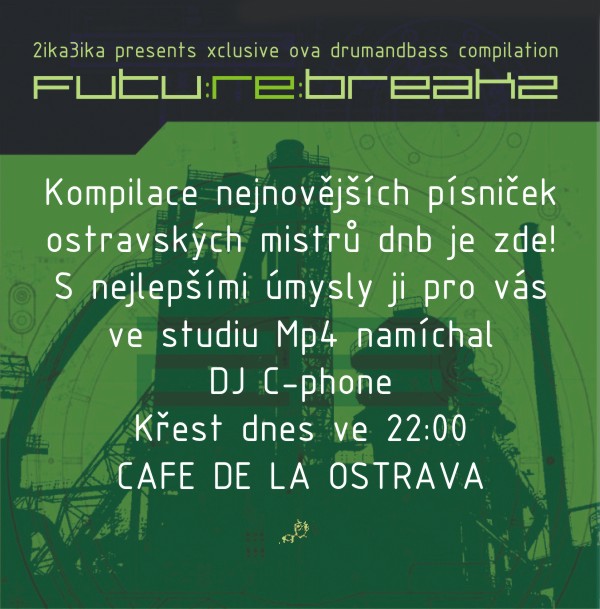 Dnes, 10.11.2004, se v klubu Cafe De La Ostrava uskuteční křest nové kompilace polámaných beatů z dílny ostravských producentů, kterou precizně namíchal Dj C-phone. Tracklist a obal po prokliknutí, flyer na křest zde. |