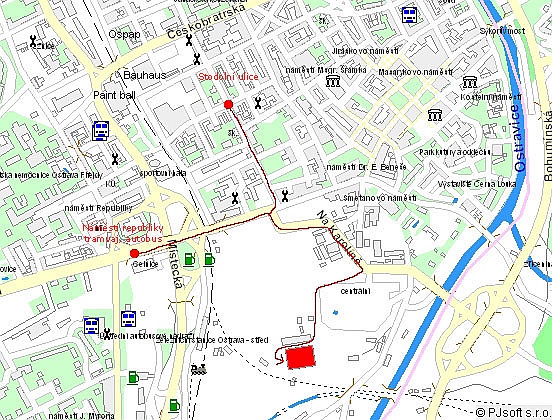 Jelikož se množily dotazy (zejména těch mimoostravských), kdeže se vlastně celá páteční tekdrumová taškařice koná, nabízíme přehlednou mapku s vyznačenou trasou. Na místo dojdete pěšky z centra (Stodolní) anebo z dopravního uzlu na Náměstí republiky (tramvaj, trolejbus) cca za deset minut. |