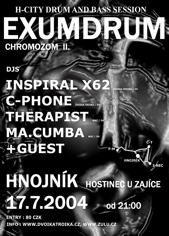 Kdy so 17. 7. 2004 Název:EXUMDRUM CHROMOZOM 2 Kde:Restaurace U Zajíce, Hnojník (mezi Frýdkem a Třincem) ..viz mapka na velkém flayeru.